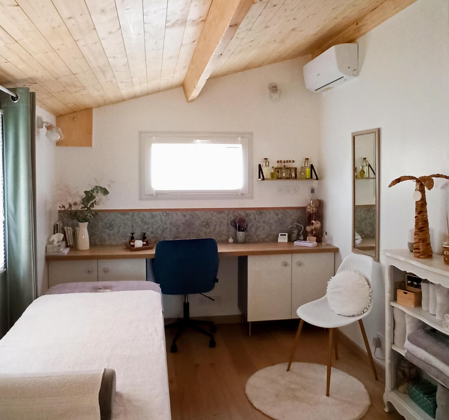 Un massage relaxant pour se décharger des tensions du quotidien, suivi d'un moment convivial de dégustation gourmande.J'ai voulu créer un endroit où les femmes peuvent passer un moment privilégié pour se détendre.